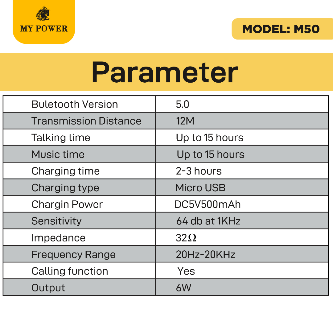Product details of My Power Bluetooth Headphone, Bluetooth Headset, M50, Wireless Headphone, High Bass Headphone