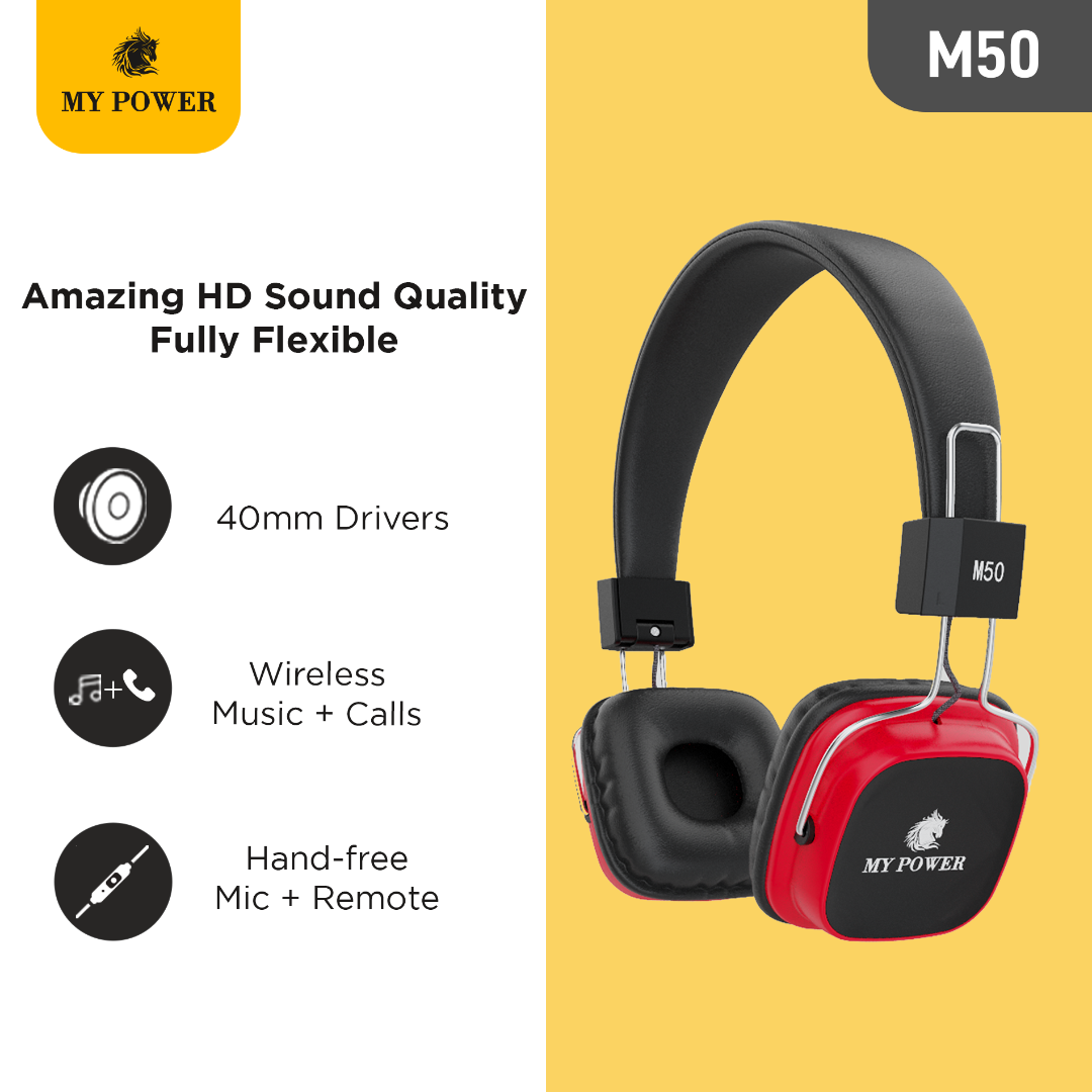 My Power Bluetooth Headphone, Bluetooth Headset, M50, Wireless Headphone, High Bass Headphone